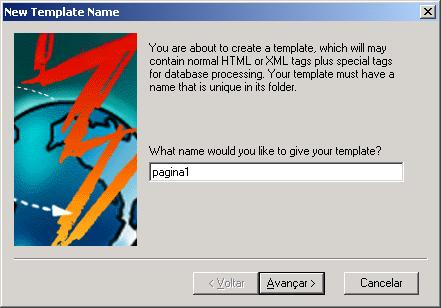 14. Na janela New Template Name, coloque o nome pagina1 e clique 5 vezes no botão Avançar sem alterar os valores, em seguida clique no botão concluir.