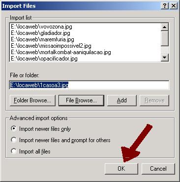 24. Selecione os arquivos que deseja importar e clique no botão OK. Deverá aparecer me Import Files a relação de arquivos a serem importados, como mostra a figura abaixo. Após conferir clique no botão OK.