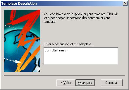 28. Na janela Template Description, coloque uma descrição para a nova página. Por exemplo : Consulta Filmes, em seguida clique no botão avançar.