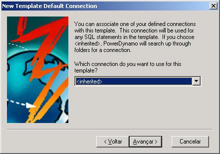 29. Na janela New Template Default Connection, utilize < inherited > . Isto permitirá o acesso as tabelas do banco de dados sem a preocupação de criação de novas conexões.