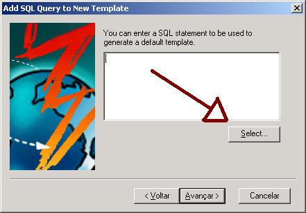 30. Na janela Add SQL Query to New Template, clique no botão Select para que você possa elaboras a instrução SQL com ajuda do Edit SQL Query..