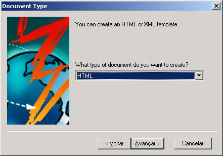 36. Na janela Document Type, você seleciona o tipo de documento que está sendo criado. Escolha HTML e clique no botão avançar.