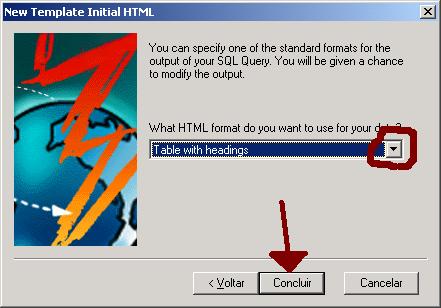 37. Em New Template Initial HTML, selecione Table with headings e clique no botão concluir.